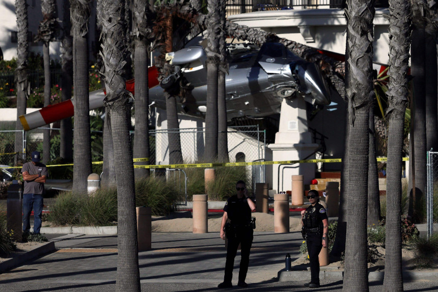 Dramatiska helikoptera avārija notika Hantingtonbīčā. Hospitalizēti tika pieci cilvēki — divi pasažieri tika izvilkti no vraka un trīs gājēji tika notriekti krītošās lidmašīnas vai atlūzu dēļ.