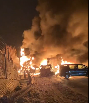 Ziņojumā teiks, ka milzīgais ugunsgrēks izveidojies, saduroties 15 automašīnām.