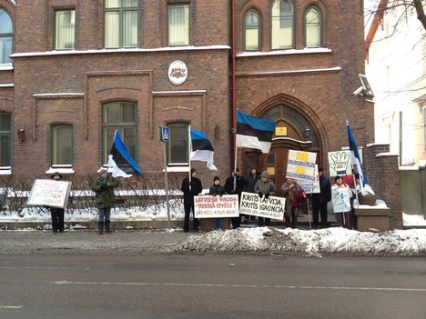 Igauņu nacionālistu kluba pārstāvji šodien pie Latvijas vēstniecības Tallinā piedalījās piketā pret krievu kā otru valsts valodu Latvijā, ziņo portāls dzd.ee.