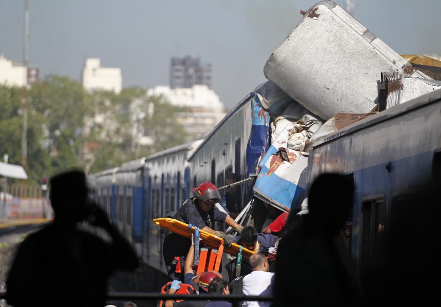 Argentīnas galvaspilsētā Buenosairesā dzelzceļa stacijā trešdien pasažieru vilciens, kurā bija ap 2000 pasažieru noskrējis no sliedēm un ietriecies peronā, negadījumā gājuši bojā 49, ievainoti 550 cilvēki, ziņo vietējie mediji.