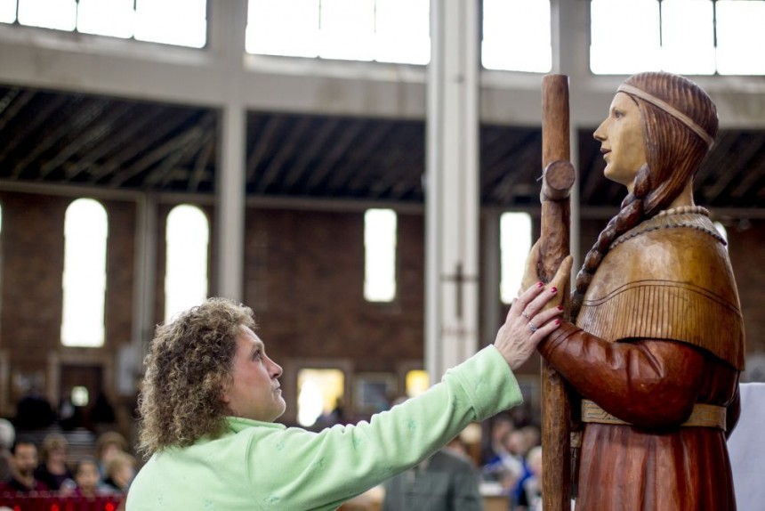 17. gadsimtā dzīvojusī Kateri Tekakvita savulaik kristiešu misionārus pārsteigusi ar savu dziļo garīgumu, un Vatikāns ir atzinis, ka viņa ar lūgšanām 2006. gadā izglābusi slimu bērnu. Par godu šim notikumam svētceļojumā uz Svētā Pētera laukumu Vatikānā bija ieradušies arī vairāki indiāņi tradicionālajos tērpos, kuri dziedāja K. Tekakvitai veltītas dziesmas. Saskaņā ar Romas katoļu baznīcas izpratni svētais ir cilvēks, par kuru ir zināms, ka viņš pēc nāves ir nonācis debesīs.