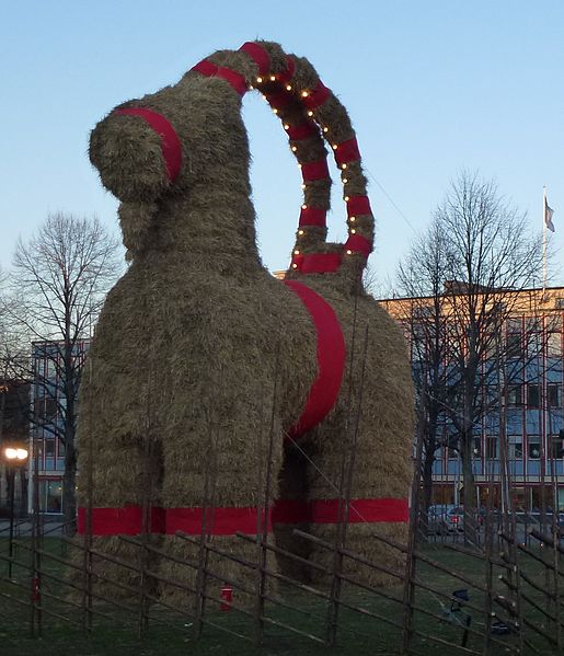 Ziemassvētku simbols - āzis ik gadu kļūst par dedzinātāju upuri, no 1980. gada.Ik gadu tiek liktas derības uz to, vai āzis pārdzīvos Ziemassvētkus, vai arī uz to, pēc cik ilga laika tas tiks nodedzināts.