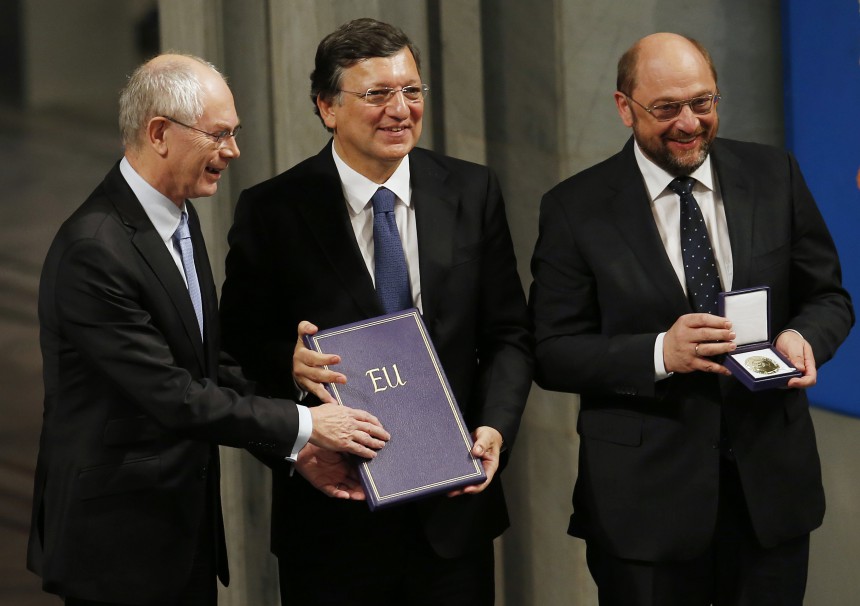Prestižās godalgas piešķiršana Eiropas Savienībai ir pārsteidzoša, jo šobrīd ES plosa nopietnas domstarpības starp parādu jūgā nonākušajām dienvidu dalībvalstīm un daudz labāk pārtikušajām dalībvalstīm Vācijas vadībā.