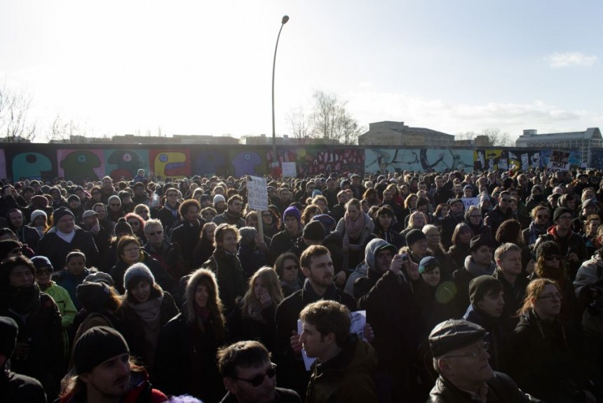 Demonstrācijas pie 1,3 kilometrus garā mūra posma sākās piektdien, kad tika aizvests pirmais panelis. Svētdien protesta mītiņš pulcēja jau aptuveni 6000 cilvēku, bet pirmdien demonstrantu skaits mērāms vairs tikai ap simtu.