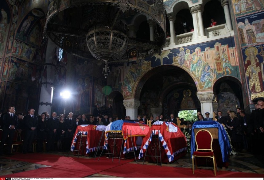 Ar Serbijas karogiem segtie šķirsti tika novietoti Oplenacas Jura baznīcā, kur liturģiju vadīja Serbijas patriarhs Irinejs. Tad šķirsti tika nogādāti karaliskās ģimenes kapenēs.
