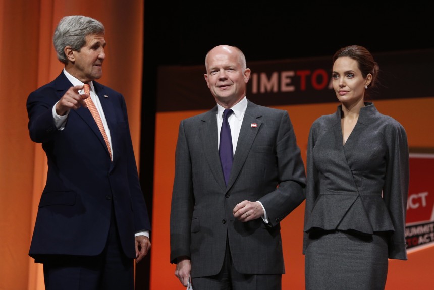Džolija pašlaik atrodas Londonā, kur kopā ar britu iekšlietu ministru Viljamu Heigu uzstājas konferencē, kas veltīta cīņai ar seksuālo vardarbību karadarbības zonās.