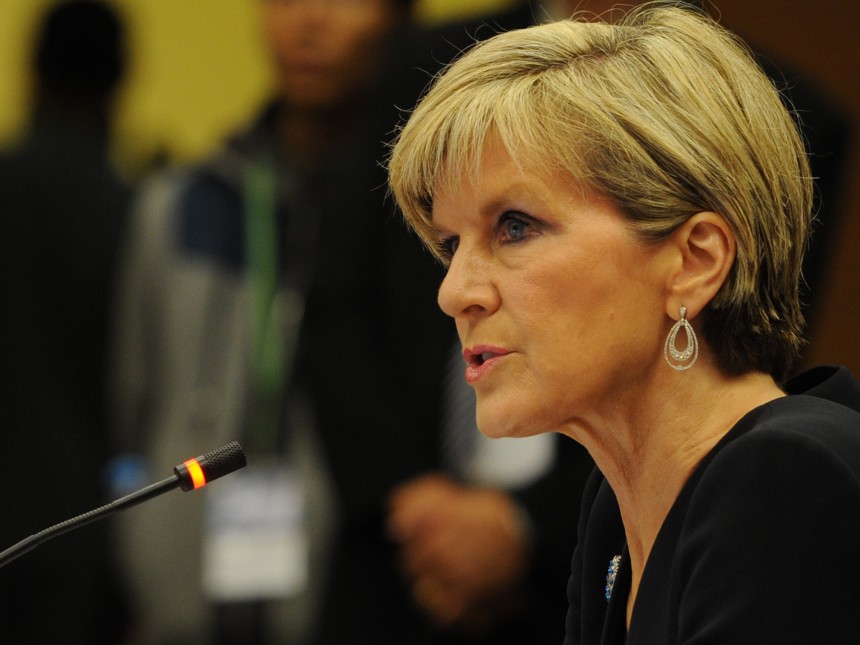 Austrālijas ārlietu ministre mēģinās pārliecināt pasaules attīstītāko valstu līderus izslēgt Krievijas prezidentu Vladimiru Putinu no novembrī gaidāmā G20 samita Brisbenā.