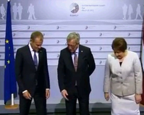 Austrumu partnerības samita laikā Eiropas komisijas prezidents Žans- Klods Junkers, izlēma padarīt pieņemšanas un sasveicināšanās procedūru nedaudz jautrāku.