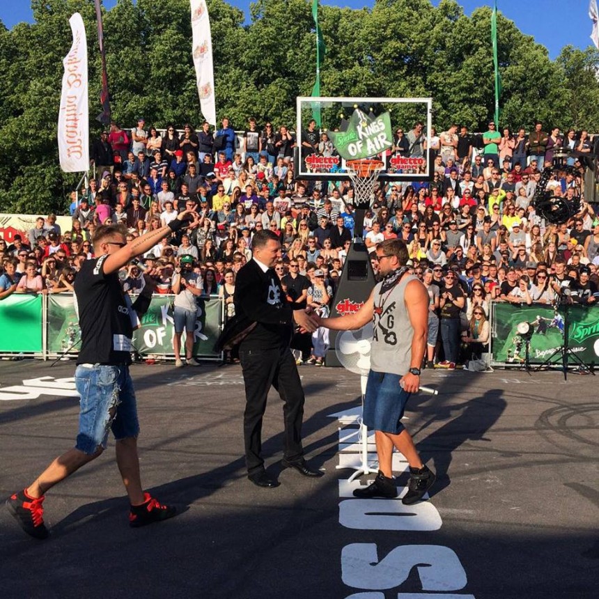Vakar Vējonis sajūsminājis Grīziņkalnā notiekošā "slam dunk" konkursa "Sprite Kings of Air" skatītājus, pievienojoties reperu apvienībai "Olas" un Renāram Zeltiņam viņu hita "#Prezidents" laikā. R. Vējonis laukumā, kurš kalpojis kā skatuve, iznācis brīdī, kad reperi dziedājuši: „Kur tu esi mans prezident?"