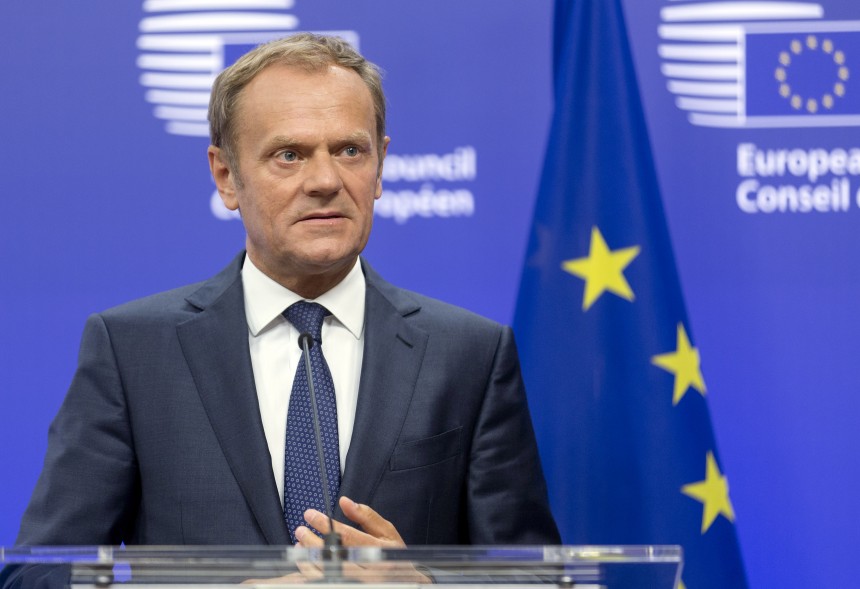 "Tas katrā ziņā ir vēsturisks brīdis, taču ne brīdis, lai reaģētu histēriski," teica Eiropadomes prezidents.