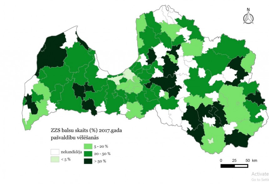 Lasītāju uzmanībai - viens piemērs. Teritoriāli labākos rezultātus 2017. gada pašvaldību vēlēšanās parādīja Zaļo un zemnieku savienībā ietilpstošās partijas. Lai iegūtu izpratni par kopējo atbalstītāju skaitu, tika summētas kopā balsis, kas nodotas atsevišķi par Latvijas Zemnieku savienību (LZS), Latvijas Zaļo partiju, partiju Latvijai un Ventspilij, kā arī par Liepājas partiju. Novados, kuros kāda no šīm partijām bija koalīcijā ar jebkuru citu politisko spēku, tika ņemti vērā attiecīgās koalīcijas kopējie rezultāti. Kā redzams, tad, salīdzinot 2014. gada Saeimas vēlēšanu rezultātus ar 2017. gada pašvaldību vēlēšanām, atbalsts LZS ir saglabājies vai pat uzlabojies. Savukārt LZS rezultāts Rīgā 2017. gadā atbilst LZS rezultātam Saeimas vēlēšanām Rīgā un nav uzskatāms par īpašu neveiksmi.