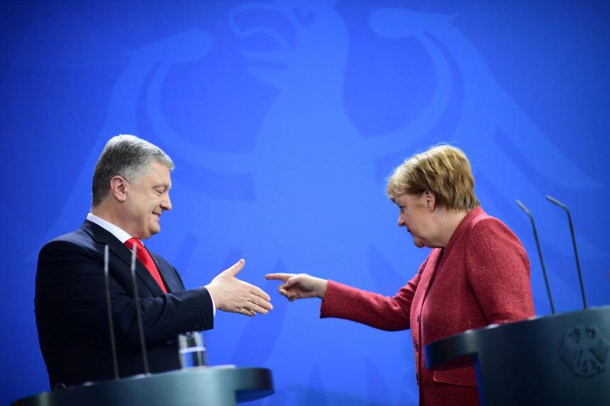 Vācijas kanclere Angela Merkele piektdien Berlīnē, tiekoties ar Ukrainas prezidentu Petro Porošenko, solījusi, ka Vācija turpinās atbalstīt Ukrainu un tās teritoriālo integritāti.