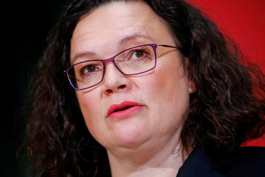 Vācijas valdošajā koalīcijā ietilpstošās Sociāldemokrātiskās partijas līdere Andrea Nālesa svētdien pavēstīja, ka atkāpsies no partijas priekšsēdētājas un partijas Bundestāga frakcijas vadītājas amata.