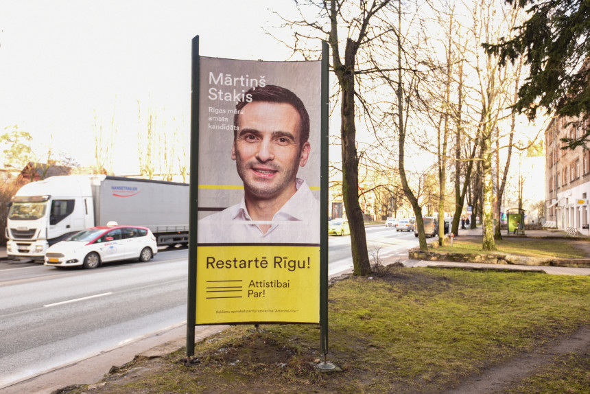 Tikmēr atsevišķas partijas jau sākušas reklamēt savus potenciālos pārstāvju Rīgas pašvaldībām. Patlaban vērienīgāko aģitāciju izvērsusi apvienība "Attīstībai/Par!", kura vides un radio reklāmās slavē savu Rīgas mēra kandidātu, Saeimas deputātu un Aizsardzības ministrijas parlamentāro sekretāru Mārtiņu Staķi.