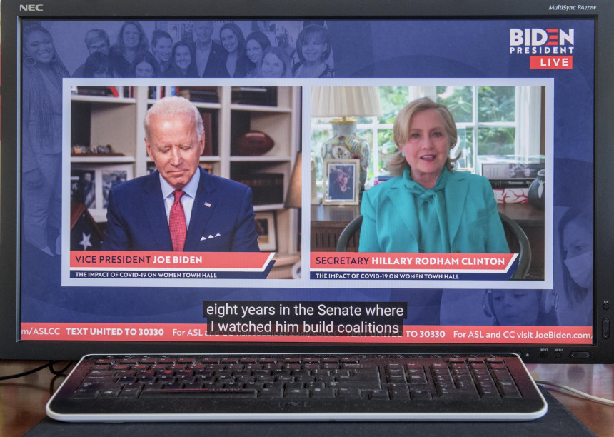 "Es vēlos pievienot savu balsi tiem daudzajiem, kas atbalstījuši jūs būt par mūsu prezidentu," tiešsaistes videokonferencē ar Baidenu pavēstīja Klintone. "Es vēlos, lai jūs tieši šobrīd būtu mūsu prezidents."