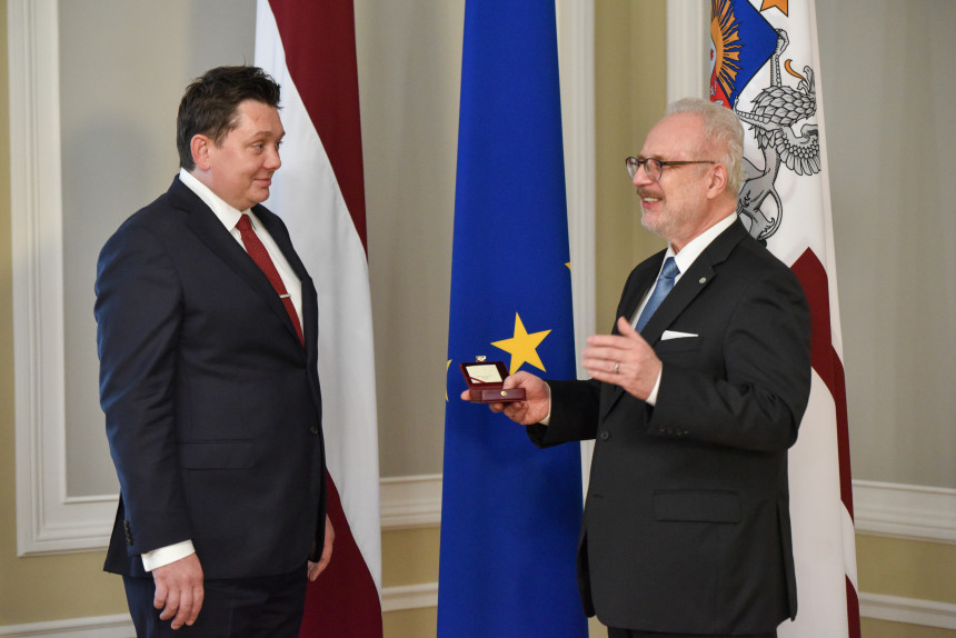 Valsts prezidenta mājās lapā norādīts, ka šodien Egils Levits pasniedzis Valsts prezidenta medaļu Jānim Bordānam, Artusam Kaimiņam, Artim Pabrikam un Jurim Pūcem par sadarbību 13. Saeimā un aizejošajā valdībā