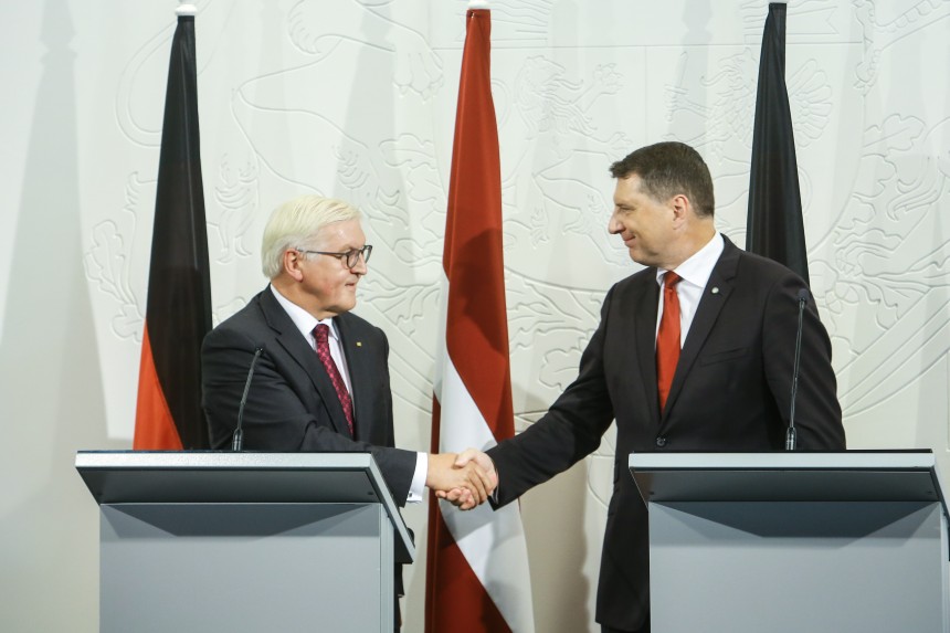 Valsts prezidents uzsvēra, ka Vācija ir Latvijas stratēģiskais partneris vairākās nozīmīgās jomās, ar kuru notiek cieša sadarbība Eiropas Savienībā, NATO, kā arī reģionālos un starptautiskos forumos un iniciatīvās. "Baltijā aktuāls jautājums ir gaidāmās Krievijas un Baltkrievijas rīkotās militārās mācības ZAPAD-2017. Latvija augstu vērtē Vācijas atbalstu Baltijas reģiona drošības stiprināšanā, uzsākot savu karavīru sūtīšanu uz Lietuvu NATO kaujas grupas nodrošināšanai, piedaloties NATO gaisa patrulēšanas misijā Baltijas gaisa telpā, kā arī nosūtot ekspertus darbam NATO institūcijās Rīgā," teica Raimonds Vējonis.