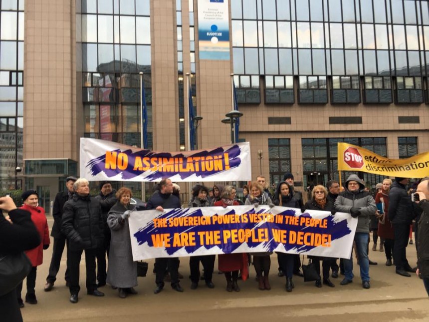Aptuveni 50 cilvēki otrdien bija pulcējušies mītiņā Briselē, lai paustu atbalstu krievu skolām Latvijā.