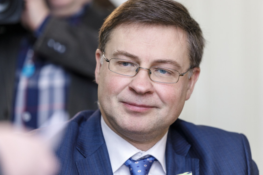 Esošajā Eiropas Komisijā (EK) Dombrovskis ir priekšsēdētāja vietnieks, kura pārziņā ir eiro un sociālais dialogs, kā arī finanšu stabilitāte, finanšu pakalpojumi un kapitāla tirgu savienība. Gada otrajā pusē EK sastāvs mainīsies, un Dombrovskis pašlaik tiek apspriests kā reālākais eirokomisāra amata kandidāts no Latvijas arī nākamajā EK sastāvā. Līdz tam gan viņš ir ievēlēts Eiropas Parlamentā un ir teicis, ka vasaras vidū pametīs komisāra amatu, lai pieņemtu deputāta mandātu.