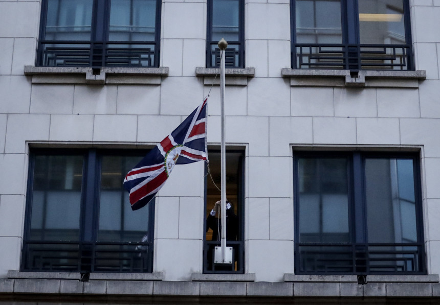Dažas stundas pirms plānotās Lielbritānijas izstāšanās no Eiropas Savienības (ES) pie bloka institūcijām piektdien sākusies Lielbritānijas karogu nolaišana.