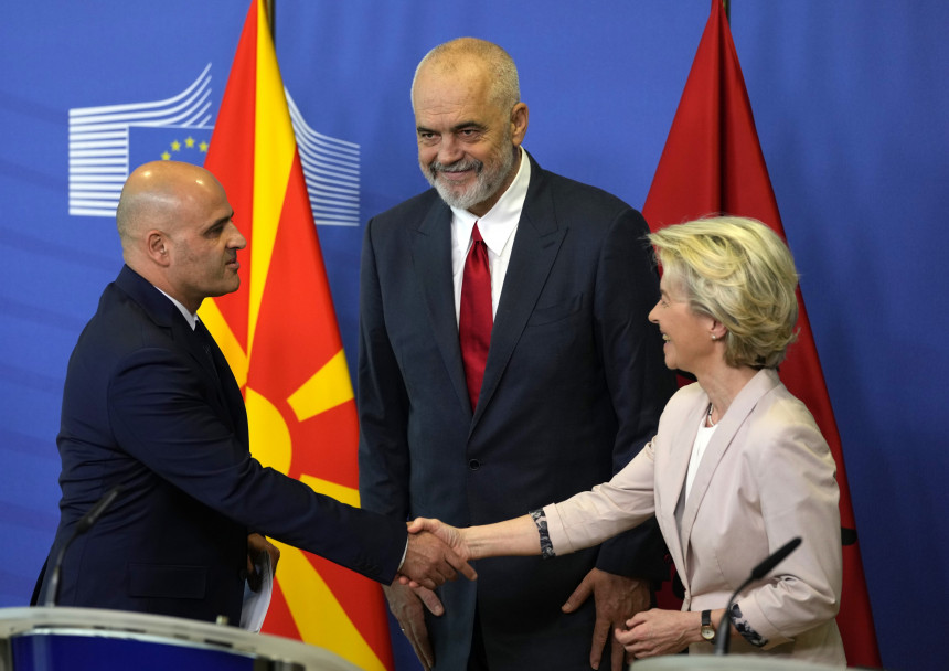 "Šodien Albānija un Ziemeļmaķedonija uzsāk iestāšanās sarunas ar ES. Šis vēsturiskais brīdis ir jūsu panākums. Rezultāts jūsu smagajam darbam," Albānijas un Ziemeļmaķedonijas premjerministriem Edi Ramam un Dimitaram Kovačevskim sacīja EK prezidente.