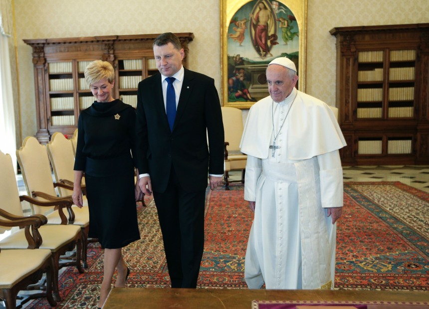Valsts prezidents Raimonds Vējonis piektdien vizītes laikā Vatikānā tikās ar Viņa Svētību pāvestu Francisku un Viņa Eminenci Svētā Krēsla Valsts sekretāru kardinālu Pjetro Parolinu. Tikšanās laikā tika pārrunāta vērtību nozīme mūsdienu sabiedrībā, kas sastopas ar dažādiem izaicinājumiem.