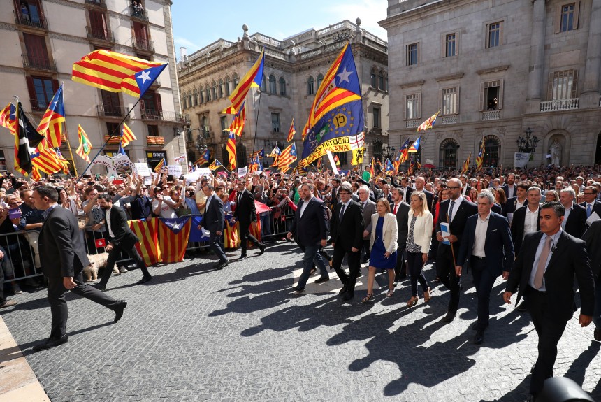 Vairāk nekā 700 Katalonijas municipalitāšu mēri sestdien pulcējās Barselonā un apstiprināja, ka atļaus municipalitāšu telpās iekārtot 1. oktobra neatkarības referenduma balsošanas iecirkņus, neraugoties uz Spānijas valdības amatpersonu brīdinājumu, ka šāda rīcība ir pretlikumīga. Madride joprojām uzsver, ka nepieļaus referenduma rīkošanu. Spānijas centrālā valdība paziņojusi par nodomu stingrāk kontrolēt provinces budžeta izdevumus, policijai dots rīkojums konfiscēt visus ar tautas nobalsošanu saistītos materiālus, bet mediji brīdināti, ka par nelikumīgiem uzskatāma arī referenduma sagatavošanās darbu atspoguļošana un aģitācijas publicēšana.