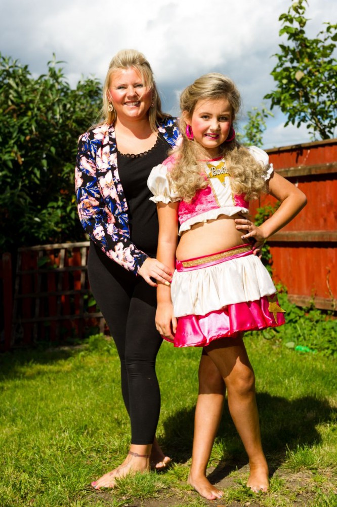 Samanta Paveja dzīvo Anglijas austrumos un atzīst, ka tērē apmēram 500 eiro mēnesī, lai nodrošinātu savu deviņgadīgo meitu ar mākslīgo iedegumu, kosmētiku, skropstām un matu sakārtojumu.