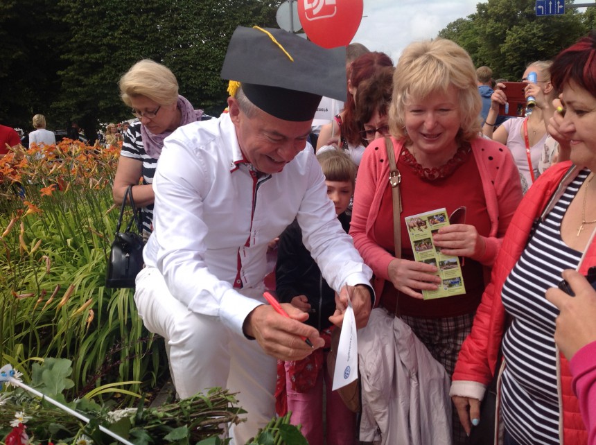 Aivars Lembergs aizvadītajos Ventspils pilsētas svētkos burtiski bija uz izķeršanu. Ļaudis bija izveidojuši garu rindu, lai klātienē paspiestu roku Ventspils mēram, kā arī par piemiņu saņemtu viņa rakstītu autogrāfu. Lembergs nevienam neatteica, un itin visi interesenti tika pie kārotā autogrāfa, kā arī tik iecienītā selfija ar Ventspils domes priekšsēdētāju.