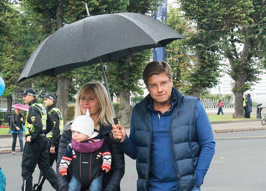 Rīgas pirmais pāris Iveta un Nils Ušakovi beidzamās nedēļas laikā sabiedrībā arvien biežāk dodas kopā ar savu mazo dēlēnu Tomu. Te Toms guļ ratiņos, te ar lielu interesi iepazīst pasauli, atrodoties mammas ķengursomā.