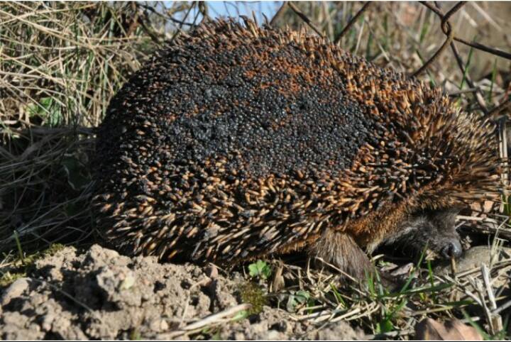 Ieva savā facebook profilā publiskojusi traģisku fotogrāfiju, kurā sadedzis ezis, kā arī skarbu vēstījumu kūlas dedzinātājiem.