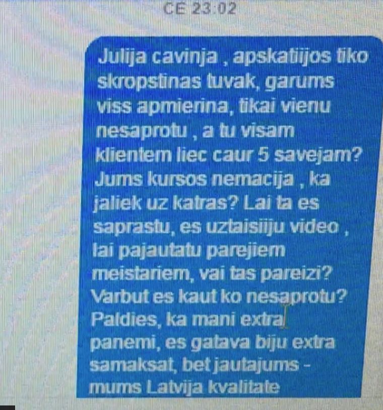 Pēc skropstu pieaudzēšanās, kliente devusies mājās un tad secinājusi, ka darbs nav veikts kvalitatīvi. Par to viņa īsziņas viedā informējusi meistari Jūliju. Tā vietā, lai atvainotos, meistare neskopojās ar dzēlīgiem vārdiem.