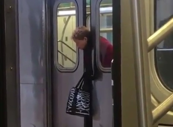 Sociālajā medijā Instagram ir ievietots šokējošs video, kurā redzams, kā kādas kundzes galva ir iespiesta Ņujorkas metro vagona durvīs, savukārt apkārt esošie cilvēki vienaldzīgi iet garām sievietei un nepalīdz.