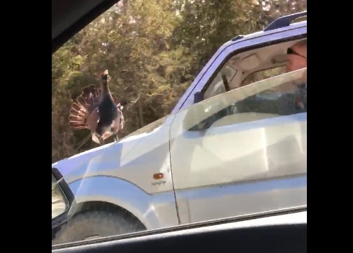 Sociālajā medijā facebook ir ievietots video, kurā redzams, kā kāds autovadītājs Latvijā ir iekļuvis visai amizantā situācijā. Video redzams, kā uz automašīnas motora pārsega stāv agresīvi noskaņots mednis un neļauj automašīnai braukt tālāk.