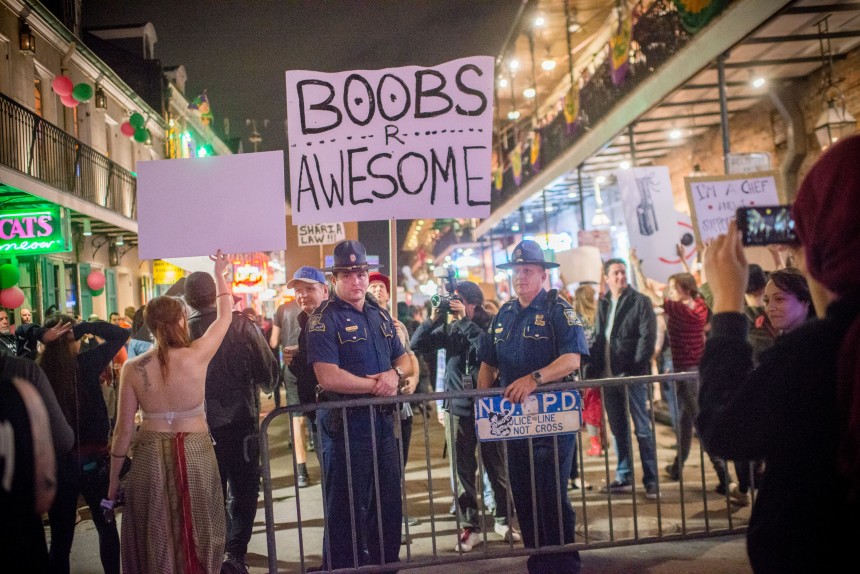 Protestētāji sūdzējās, ka klubu slēgšana nozīmē zaudētas darbavietas un ka varasiestādes cenšas padarīt franču kvartālu pārāk draudzīgu ģimenēm.