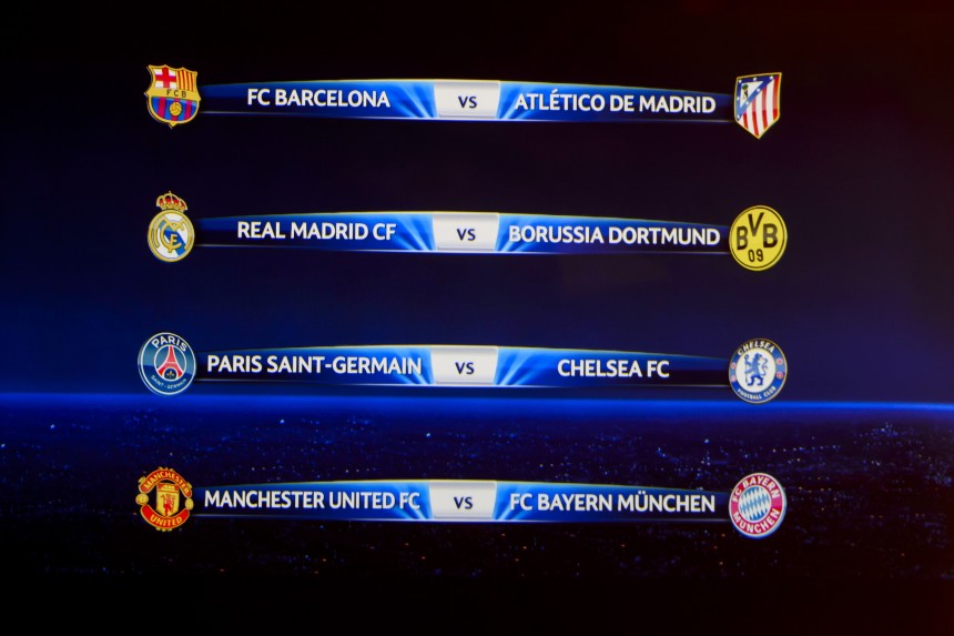 Šodien UEFA mītnē Nionā notikusi UEFA Čempionu līgas 1/4 finālu izloze. Madrides "Real" lūkos revanšēties Dortmundes "Borussia" par neveiksmi pagājušajā sezonā, savukārt titula aizstāvētāja Minhenes "Bayern" spēkosies ar neveiksmju vajāto "Manchester United".