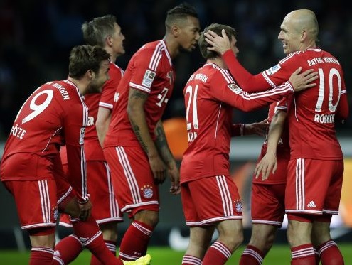 Minhenes "Bayern" šodien varēja ne tikai nodrošināt otro Bundeslīgas titulu pēc kārtas, bet arī to izdarīt rekordātrā laikā – tikai 27 kārtās. Lai tas notiktu, "Bayern" šodien Berlīnē pret "Hertha" bija jāizcīna 25. uzvara sezonā, lai nekas nebūtu atkarīgs no Dortmundes "Borussia" un Gelzenkirhenes "Schalke" mača. Mario Mandžukičam paliekot uz soliņa, Mario Gece laukumā darbojās kā "viltus devītnieks", un "Bayern" lielā mērā izšķīra spēles likteni jau tās pašā sākumā.