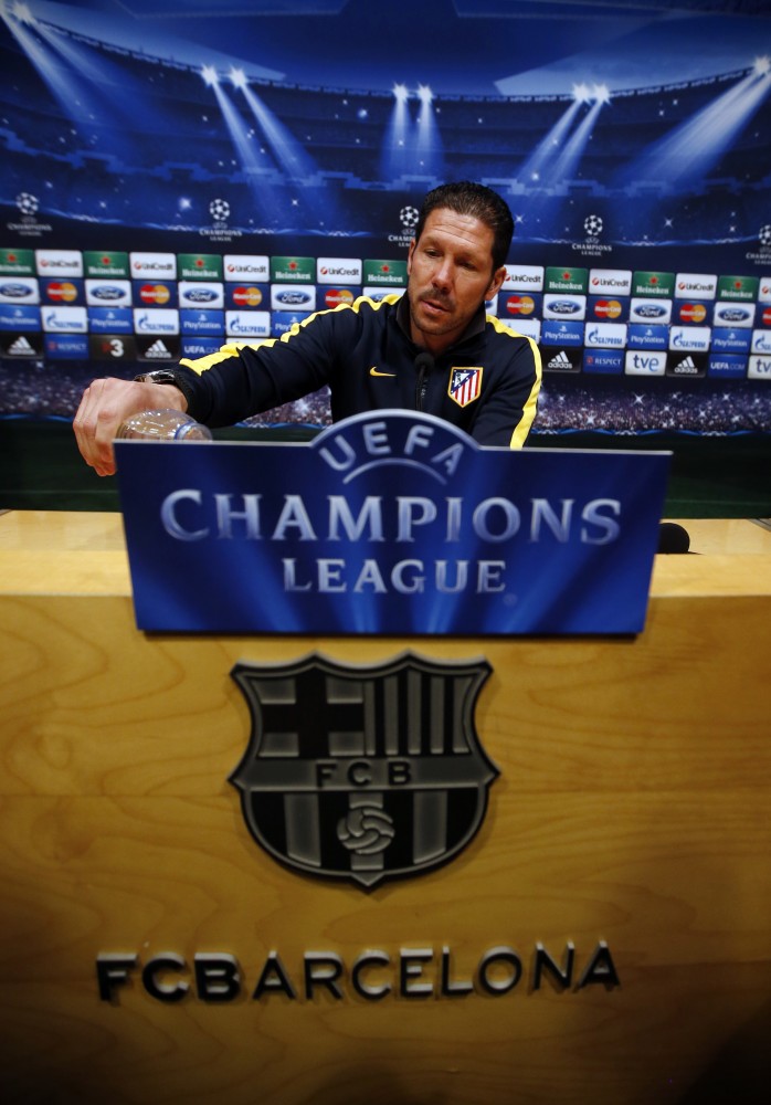 „Atletico” treneris un Martino tautietis Djēgo Simeone paredz, ka šī būs visgrūtākā no līdzšinējām spēlēm pret „Barcelona” šosezon: „Viņi atgriezušies labākajā formā un gribēs izšķirt dueli jau pirmajā spēlē. Mums būs jāizmanto pilnībā savas iespējas. Mums ir sava identitāte un turēšos pie tās, godinot mūsu kluba vēsturi. „Barcelona” var izcīnīt trīs titulus, viņi spēlē ļoti labi, un viņi ir pieraduši pie šāda līmeņa un nozīmes spēlēm.” Arī „Atletico” nedēļas nogalē izcīnīja minimālu, tiesa, nedaudz rezultatīvāku uzvaru – 2:1 Bilbao pār vietējo „Athletic”. Tā bija madridiešu piektā uzvara vietējā čempionātā pēc kārtas, un 76 iegūtie punkti ir tikpat, cik izdevās savākt visā pagājušajā sezonā kopā.