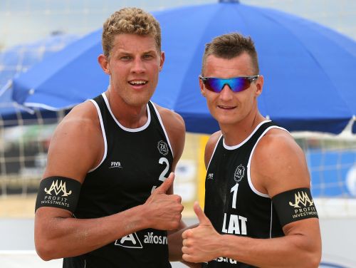 Latvijas pludmales volejbola duets Mārtiņš Pļaviņš un Aleksandrs Solovejs savā vienīgajā cīņā divos setos ar 21:17 un 21:11 uzveica čehus Kubalu/Dumeku, garantējot vietu FIVB "Grand Slam" pamatsacensībās Maskavā. Tikmēr zaudējumu pirmajā no divām kārtām piedzīvoja Toms Šmēdiņš un Jānis Pēda, kas divos setos ar 18:21 un 15:21 atzina Venecuēlas dueta Villafaņē/Ernandesa pārākumu.