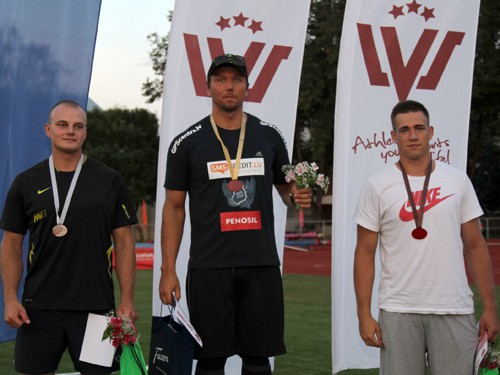 Vakara nagla, protams, bija šķēpmešanas sacensības. Par Latvijas čempionu kļuva Ainārs Kovals, kurš veica vienu metienu, ar ko arī pietika uzvarai - 81,75 metri. Otrais palika Ansis Brūns (81,28), bet trešajā vietā ierindojās Rolands Štrobinders (77,39). Aiz pjedestāla palika gan Latvijas rekordists Vadims Vasiļevskis (76,42, 4.vieta), gan pasaules junioru rekorda īpašnieks Zigismunds Sirmais (72,23).