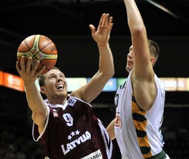Latvijas izlases sākumsastāvs: Strēlnieks, Blūms, Janičenoks, Mejeris, Bērziņš