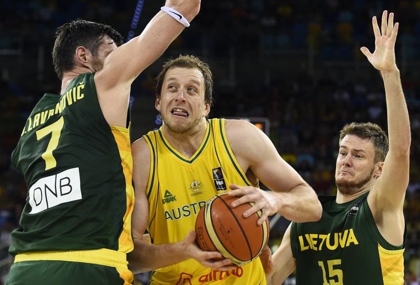 Spēles ievads Austrālijai padevās izcili - teicami uzbrukumā darbojās centra spēlētājs Beinss un uzbrucējs Inglss, trīs minūšu laikā panākot 11:4 un liekot trenerim Kazlauskam sasaukt pirmo minūtes apspriedi. Arī pēc tās Lietuvas spēle neuzlabojās - kvalitatīva saspēles vadītāja trūkums mūsu kaimiņiem neļāva pārvarēt austrāliešu presingu, kas ļāva Austrālijai ceturkšņa vidū panākt 17:6 un likt pirmā numura pienākumus pārņemt pieredzējušajam Seibutim. Tikai laukumā nākot D.Lavrinovičam un Jankūnam, mūsu kaimiņiem izdevās uzlabot spēli, taču pēc pirmās desmitminūtes austrāliešu handikaps jau desmit punktu vērtē - 30:20. Otrajā periodā komandu rezultativitāte noplaka, taču lietuviešiem problēmas tās pašas - saspēles vadītājam Juskēvičam bumba slīdēja ārā no rokām, bet centrs Valančūns tika pilnībā neitralizēts (puslaikā palika uz nulles), kā rezultātā lietuvieši sešu minūšu laikā neguva ne punkta. Puslaika pārtraukumā Austrālijas spēlētāji devās ar lielu smaidu uz lūpām - uzbrucējs Inglss līdz ar puslaika beigu sirēnu realizēja skaistu step-back tālmetienu no 45 grādiem. Rezultāts 47:28.