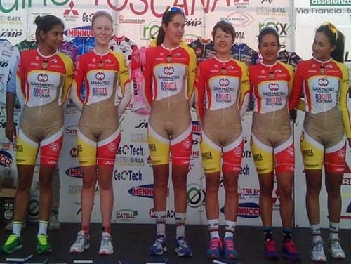 Šādās sporta formās Kolumbijas riteņbraukšanas komanda piedalījās "Giro della Toscana", taču Kolumbijas mediji lēš, ka tērpu dizainu esot radījusi tieši viena no braucējām un ka šādās formās komanda braucot jau vairākus mēnešus.