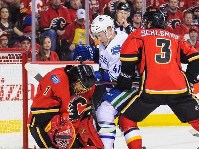 Pirmais periods gan bija neveiksmīgs visai Vankūveras komandai, jo "Flames" izmantoja Ķēniņa noraidījumu un panāca 1:0. Vairākumā Henrikam Sedīnam izdevās panākt neizsķirtu, taču sekoja vēl "Flames" vārti, par kuriem parūpējās Jirži Hudlers un Sems Benets, panākot 3:1. Pēc pirmā perioda tika nomainīts "Canucks" vārtsargs Edijs Laks, dodot vietu Raienam Milleram, kurš spēles atlikušajā daļā nostāvēja sausā, taču vārtus neguva arī "Canucks" un zaudēja 1:3.