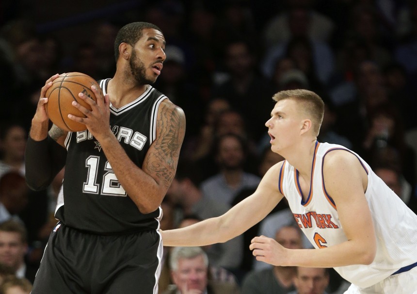 Kristaps Porziņģis savā otrā NBA mačā „Madison Square Garden” arēnā tikās ar elites pretiniekiem – Grega Popoviča vadīto „Spurs”, pieckārtējo NBA čempioni, kurai vasarā pievienojās arī Lamarkuss Oldridžs, viens no līgas labākajiem spēka uzbrucējiem. Tieši Oldridžs spēles sākumā cīnījās pret Porziņģi un kopā ar Timu Dankanu sagādāja viņam divas piezīmes pirmajās astoņās minūtēs, taču latvietis šajā laikā paspēja gūt piecus punktus, ieskaitot eleganti noslēgtu caurgājienu, un savākt sešas atlēkušās bumbas.
