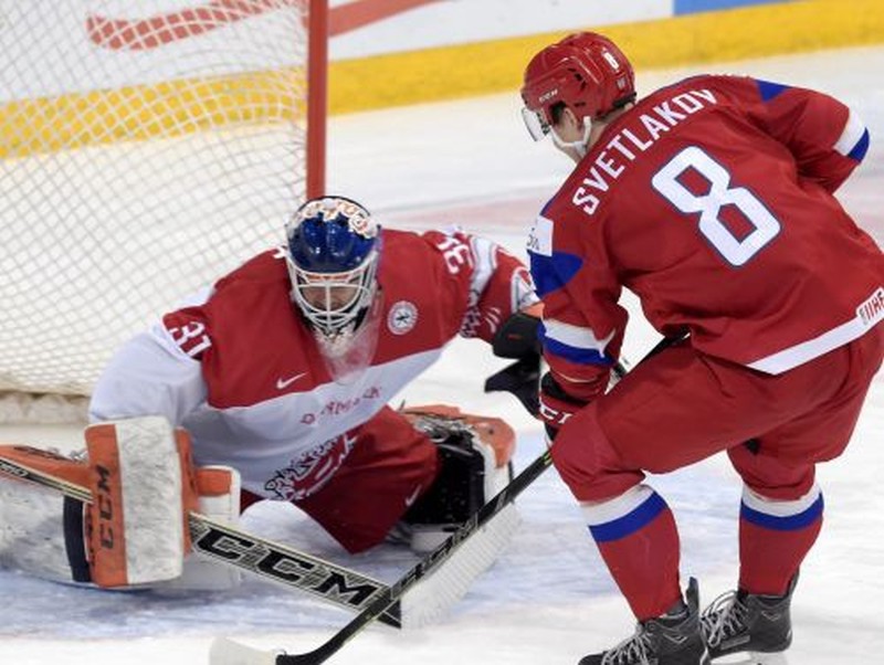 Krieviem nu atkal nācās mesties sasmelt izlieto ūdeni, taču šoreiz laika jau bija daudz mazāk, un dāņu aizsargi apņēmīgi krita priekšā katrai mestajai ripai. 45 sekundes pirms beigām veiksme gan nostājās Krievijas pusē, kad ripa pēc rikošeta nokrita tieši pie Vladislava Kameņeva nūjas, un viņš no tuvas distances panāca 3:3. Papildlaikā Krievija turpināja uzbrukt daudz vairāk un kļūdas savā zonā daudz biežāk pieļāva jau dāņi, kas 66. minūtē noveda pie zaudējuma. Vēlreiz vārtu priekšā īstajā vietā bija Kamenevs, kurš ar uzvaras vārtiem kļuva par mača varoni (4;3).
