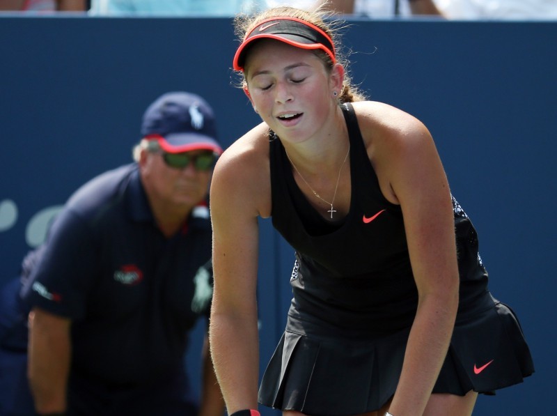 Izsējusi 4:0 pārsvaru, viņa devītajā geimā nopelnīja vēl vienu breiku un drīz servēja par uzvaru mačā un tikšanos 2. kārtā ar pasaules pirmo raketi Serēnu Viljamsu. Tāda spēle trešdien nenotiks. Ostapenko pie rezultāta 5:4 ar savu sevi bija mačbumba.