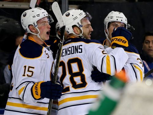Latvijas hokejists Zemgus Girgensons ar rezultatīvu piespēli palīdzēja Bufalo „Sabres” ar 3:1 NHL mačā pārspēt Sanhosē „Sharks” vienību. Savukārt Kristers Gudļevskis palika rezervē „Lightning” sausajā uzvarā 4:0 pār „Devils”.