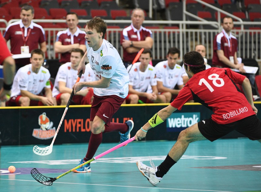Pasaules florbola čempionātā pie pirmās uzvara tikuši Latvija izlases spēlētāji, kas ar rezultātu 11:1 sagrāva Kanādu. Rīt spēlē ar Slovākiju tiks noskaidrota devītā labākā komanda pasaulē.