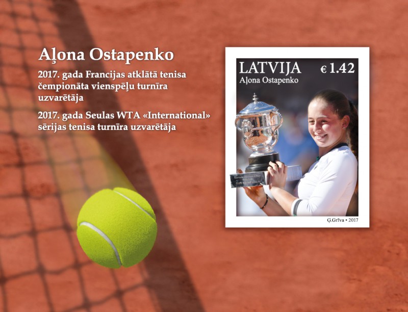 "Latvijas Pasts" izdevis tenisistei Aļonai Ostapenko veltītu pastmarku bloku, informēja pasta pārstāvji.